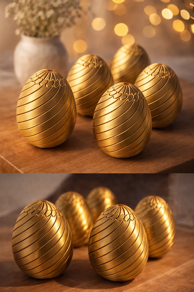 Die Produktionsdauer (Druck) beträgt ca. 8 Stunden. Mit einer Höhe von etwa 8 cm liegt das GoldenEi gut in der Hand und eignet sich perfekt für den Alltag oder den Arbeitsplatz.